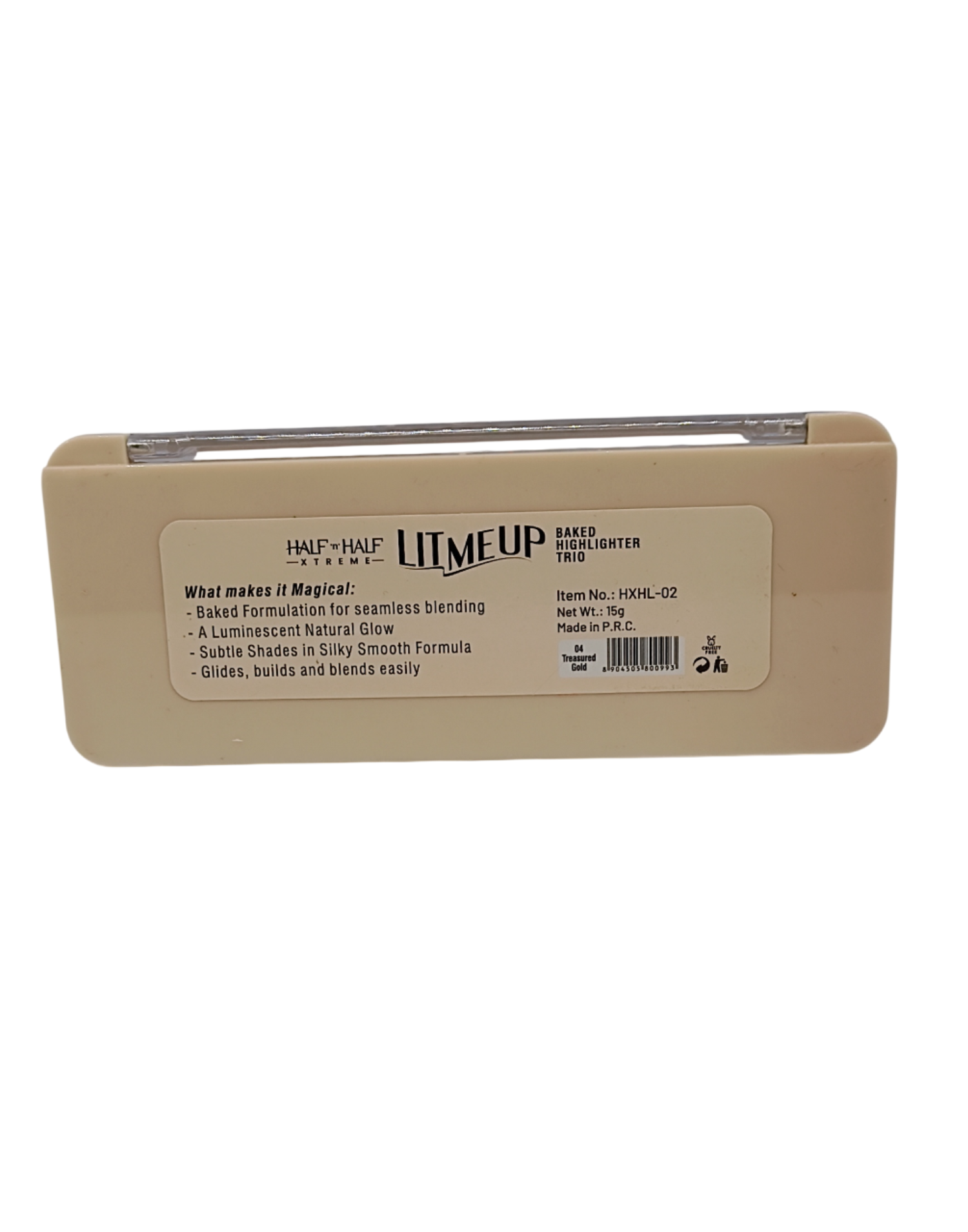 Enhance your makeup look with the stunning Half N Half Baked Highlighter Trio, designed to give you a luminous, lit-from-within glow. This beautifully baked 3-in-1 highlighter palette features three complementary shimmer shades that blend effortlessly into the skin for a smooth and radiant finish.
