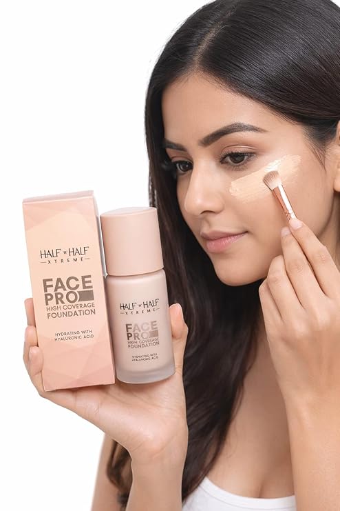 - HIGH COVERAGE- Half n Half XTREME High Coverage Liquid Foundation is designed to provide exceptional coverage, effectively camouflaging imperfections, including blemishes, redness, and uneven skin tone. It creates a flawless canvas for your makeup, giving you a perfected complexion.