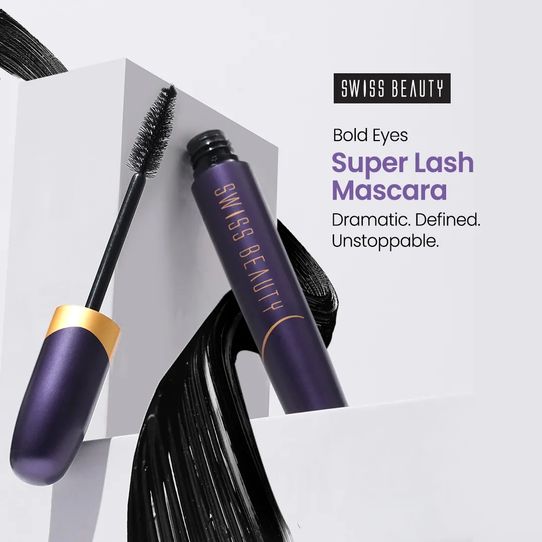 - INTENSE BLACK MASCARA– The Swiss Beauty Bold Eye Super Lash mascara is available in Very Black. Swiss Beauty Mascara comes with long lasting and smudge-proof quality that helps to stay long.